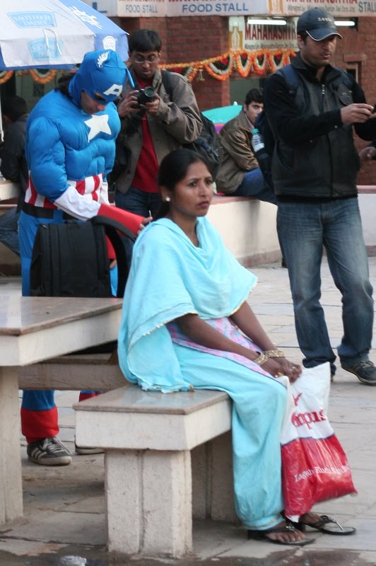 Wolverine really did look like wolverine! Not sure who these guys are in the black... when we were first coming in I saw them and said to Adam: "Hey! Look some people wore costumes!"... then Adam said: "Andrea, those aren't costumes, they're burkas!".... then I felt really bad until we got closer and we saw that they really were costumes :) haha!
